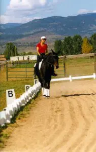 Much body strength and coordination is involved in this exercise and at first, you may feel like you are all thumbs. Time, patience and practice will bring about positive results, so stay with it. Over time, do this exercise at the walk, the trot and the canter, and do it the same way in both directions in the arena. Don’t forget to praise your animal for each correct step that he gives you.