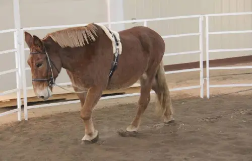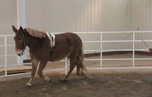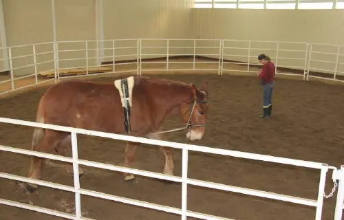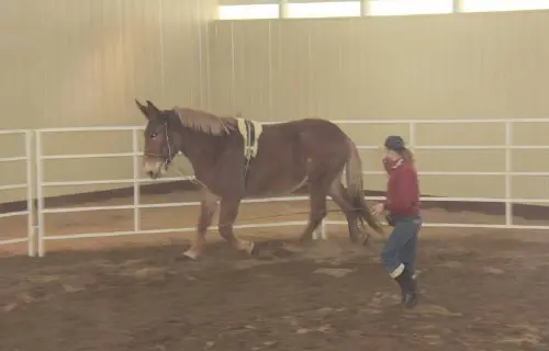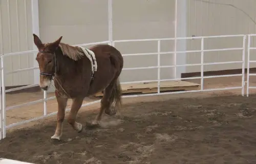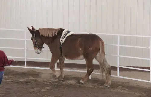 Roll had a very good workout in the indoor round pen today. I was amazed at how well he has retained his balance and strength. He did his 5 rotations at walk and 10 rotations at trot both directions with impulsion for most of it. The twist in the right hind foot was minimal and the shoes appear to be keeping that foot relatively stable. Roll’s weight and attitude are both good. He definitely is feeling much better and continues to improve.