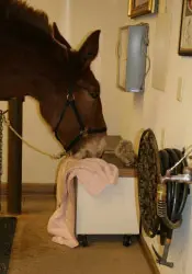 3/17/11: Rock was a little sore during his workout on Monday and had missed his massage the previous week, so he really enjoyed all the work today! Roll was antsy about the thumper, so I went to work with my hands and he seemed to like that better. He has been rather “full of himself” since he began feeling better, so I consider this a good thing.