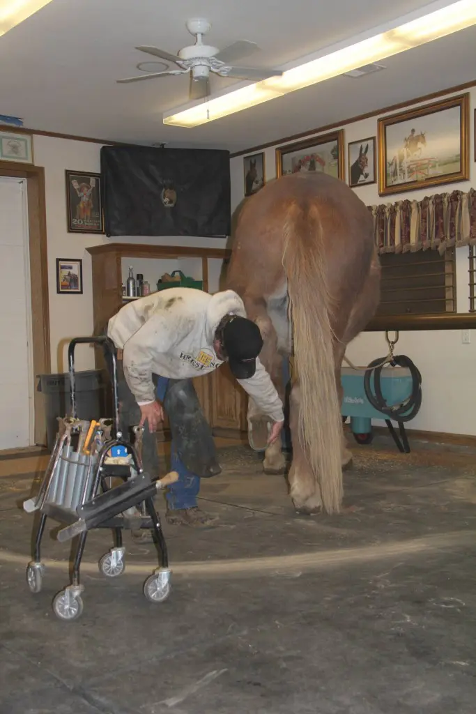 Roll stands stock still while he is being worked on and always seeks the four-square balanced position. He doesn’t ever have to lean on the farrier because his good posture and balance is so strong.