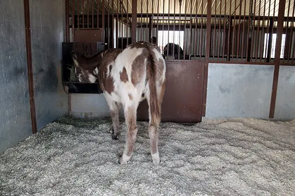 If you alter or modify this regimen with other products, you will not get the same results. I make sure the equines have free access to a trace mineral salt blocks (red block) for their mineral needs. We worm with Ivermectin paste wormer in January, March, May, July and September and break the cycle with Strongid in November. When regular worming is done, the Ivermectin will kill tape worm larva, so they cease to be a problem. We vaccinate in the spring and give boosters in the fall. Consult your veterinarian to know the types of vaccines you will need for your specific area. I never feed Longears (donkeys, or mules, or even my horses) any pre-mixed sweet feeds, or excessive alfalfa products. I feed pelleted Sho Glo because it is such a small amount and provides adequate daily nutrition. Feeding larger amounts of dehydrated feeds and supplements can increase the risk of choking. You cannot add enough water to prevent them from sucking fluid from the digestive tract. Equines, and particularly pregnant equines, should not be turned out on Fescue grass. Our pastures are brome and orchard grass which seems best, although Timothy and Coastal hay are okay for Longears if this grass mix is no available. Pregnant equines we feed grass hay only from six weeks before foaling to six weeks after foaling after which their oats mix can be resumed. Chasity will be kept in quarantine with no direct interaction with the other equines for 30 days.