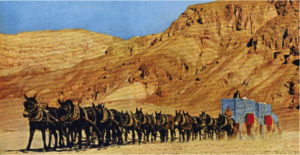 America’s iconic 20 Mule Team consists of three giant wagons, pulled by a long line of 20 mules, driven by a single man using only voice commands and a jerk line.
