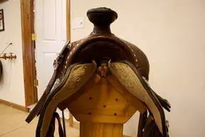 Cruppers for English and Western saddles should be made from nice soft leather and slightly narrower than the cruppers that are used with pack saddles that include breeching. You can have a D-ring installed in the back of your saddle tree to attach the crupper to a Western saddle and there is a metal “T” that comes with cruppers that will fit into the underside of an English saddle. The trouble most people have with cruppers is they get one that may have buckles too near the tail and the tail hairs get snagged, or it is too thick and causes sores under the tail.