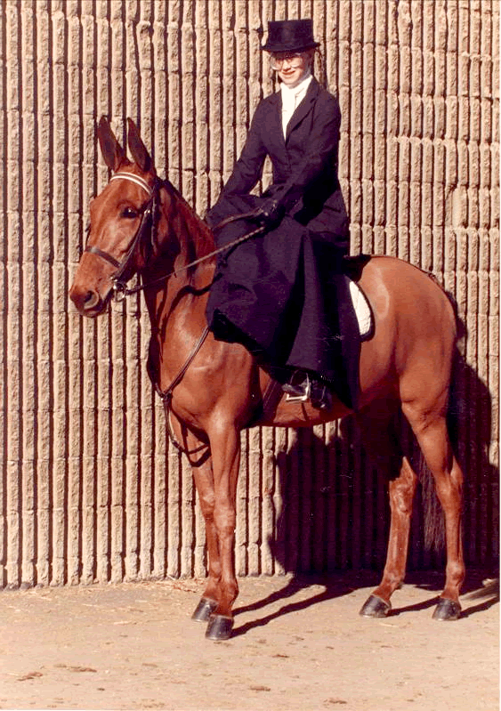 Dena spent several years practicing her riding skills on horses until 1986, when she asked her mom if she could start showing the mules. At the Douglas County Fair Mule Show she rode Lucky Three Sundowner, a 16 HH saddle mule, in the Boot Race. No doubt, her fourth place was somewhat attributed to the time it took to climb back on board! In January of 1987, Dena entered the Youth Western Pleasure (13 years and under) at the National Western Stock Show in Denver on Lucky Three Mae Bea C.T. and took second place her first time showing seriously. In April, they again entered the Youth Pleasure at the Colorado Classic Mule Show, placing first! Then it was on to Bishop Mule Days and a fifth place ribbon in the Youth Pleasure out there. At the Denver Queen City Donkey & Mule Show at the beginning of August, Dena really showed her stuff in her division winning the Youth Showmanship and the Youth Western Pleasure, still with “Bea.”