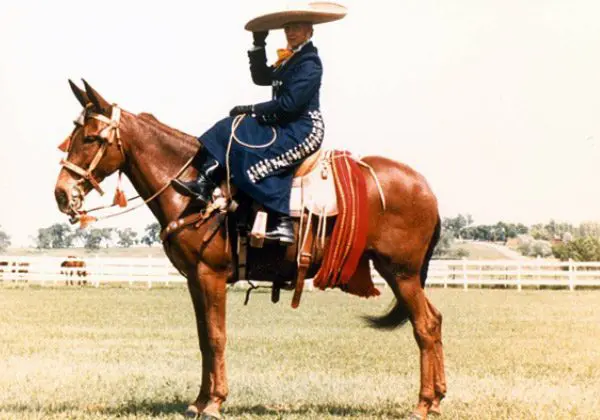 The Mule Side Saddle class took its place in the Coliseum arena amongst elegant saddle horses and Grand Prix jumping. Winner of this class was Rambling Rose, owned by Diane Walston of Longmont and shown by trainer, Joan Triolo. “‘Rose” was immaculately decked out in beautiful, handmade Mexican attire, impressive to all who were fortunate enough to be present. Second place was awarded to Nifty, owned and shown by Zella Brink of Fort Collins, Colorado.