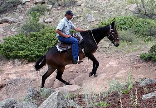 Hello, I am a 73 old woman who has been riding mules for 20yrs. Still consider myself and intermediate rider. I have a “new to me” john mule who is 9yrs, 14h. He was packed and ridden all last summer. Good ground manners, ok neck rein, learning leg pressure. Smart, willing, and good on trails. I like him very much. The problem – he is heavy on the front end and I frequently feel him slam his right foot down at a slow walk. Going down hill he really jams that front end and it nearly jars me to death.. I am having an equine chiropractor out this week to see if problem may lie there. But if not, is there a way to correct this. If so, I know you can not possible tell me in an email, but if it is correctable, who do you suggest. I live in MO and spend the winter in AZ. I like him well enough that I would be willing to spend to have him where I am not jarred to death when riding him. Any suggestions would be greatly appreciated.