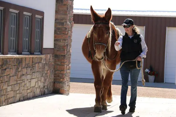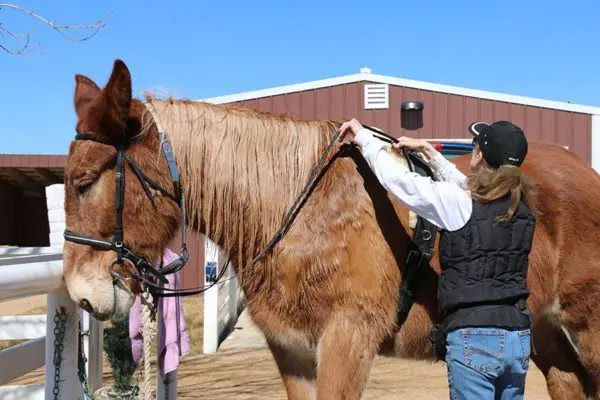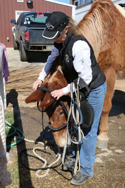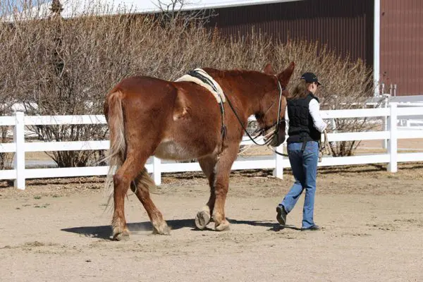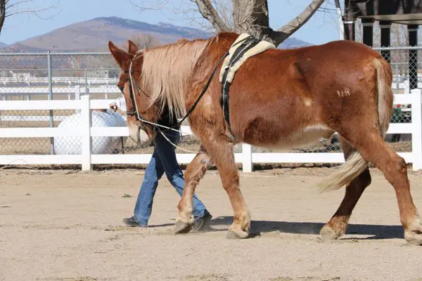 If you just let your equine go in an unrestricted frame, he can build muscle incorrectly, which will most likely cause problems later on. To be sure you are building muscle evenly throughout his body, in the correct posture and on both sides, use the “Elbow Pull” self-correcting restraint I devised, as described in DVD #2 of Training Mules & Donkeys. There is a lot of additional FREE information under TRAINING/TRAINING TIPS on my website at www.luckythreeranch.com.