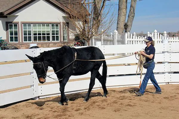 Today’s general horse training techniques do not generally work well with mules and donkeys. Most horse training techniques used today speed up the training process so people can ride or drive sooner and it makes the trainers’ techniques more attractive, but most of these techniques do not adequately prepare the equine physically in good posture for the added stress of a rider on his back. Mules and donkeys have a very strong sense of self preservation and need work that builds their bodies properly so they will feel good in their new and correct posture, or you won’t get the kind of results you might expect. Forming a good relationship with your equine begins with a consistent maintenance routine and appropriate groundwork. Most equines don’t usually get the well-structured and extended groundwork training on the lead rope that paves the way to good balance, core muscle conditioning and a willing attitude. This is essential if he is truly expected to be physically and mentally prepared for future equine activities. With donkeys and mules, this is critically important.