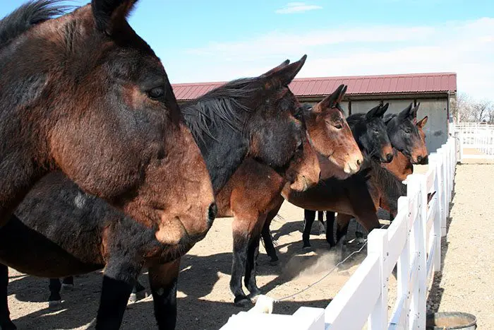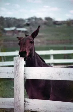 By now, we had bred three more mules, so while we were working on replacing the three sheds, we put the whole herd of mules and mares into a five-acre pasture. One day, while we were working on the new sheds, the whole herd suddenly showed up behind us! Apparently, one of our equines had pulled a “Houdini,” opening the gate and letting everyone out of the pasture. Being the affectionate and curious animals they are, our Longears (and horses) then decided they’d better come see if we needed any help.
