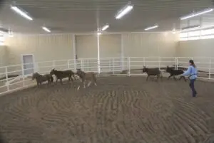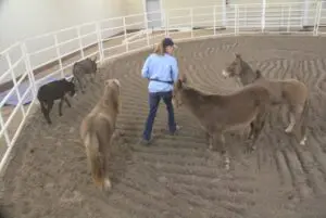 “It’s just as I thought, Spuds…no sweat! It’s the same as we did in the round pen, only we can pull in long straight lines now! It’ll be your turn in a few minutes…I just have to finish the hourglass pattern.”