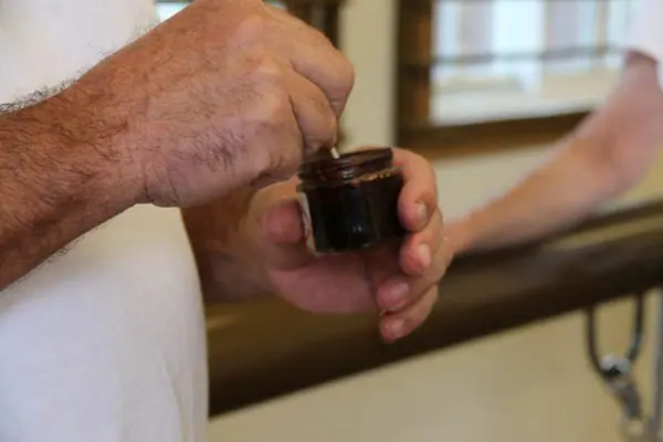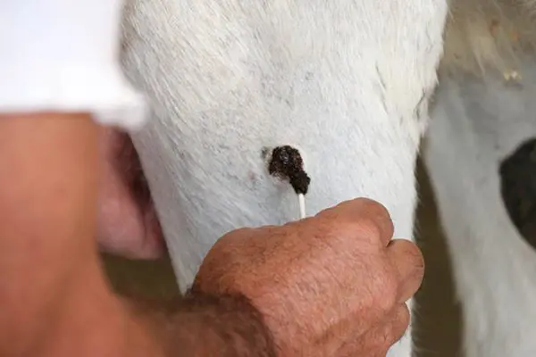 Since Wrangler’s sarcoid was in such a delicate area, we opted to use a topical approach with Xterra, applied with a Q-Tip.