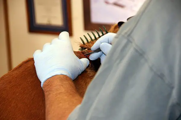 Dr. Farrand Carefully inspected the sarcoid and determined that it was not a candidate for removal because of it’s precarious location. There was no way to grab loose skin around it like there was with prior sarcoids on other animals.
