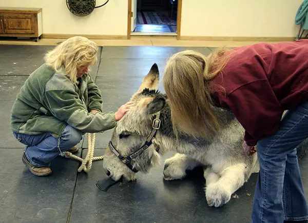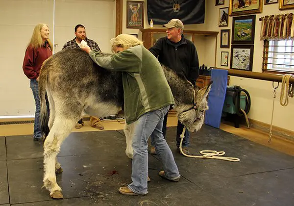 Wrangler didn’t have the where-with-all to be able to let out a full-fledged bray, but he did let out several grunts of appreciation to Dr. Greg as he left!